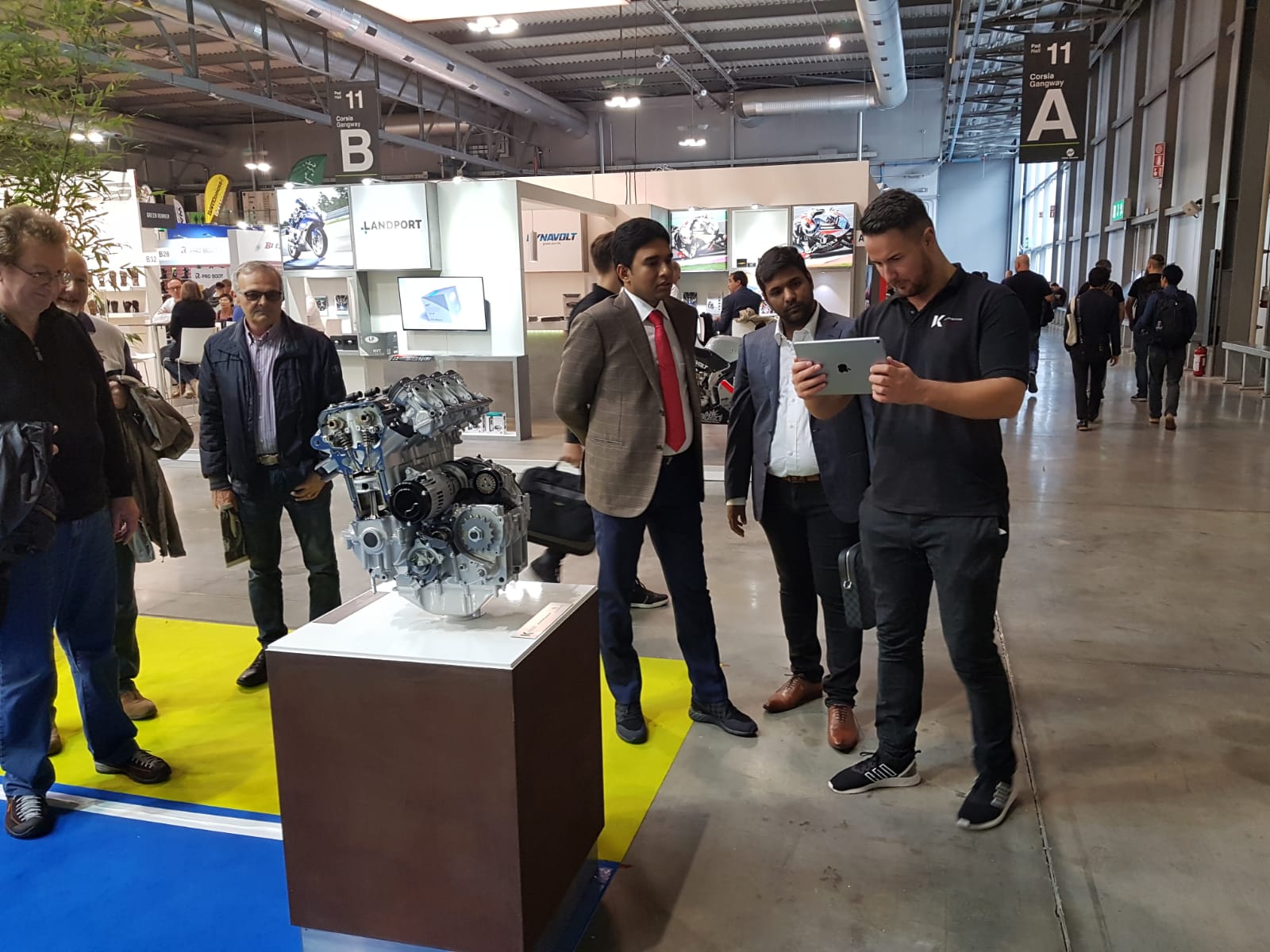 Auf der EICMA 2018 stellen AR Automation Ltd., Joint Venture zwischen eventa und Visionaries 777, und Johann Kuhn Exponate ihre neue Präsentationslösung von Motoren vor: computergenerierte Informationen verschmelzen mit den Exponaten für ein beeindruckendes Show-Erlebnis (zu sehen livebau's Video mit einem Kawasaki ZXR750 Motor).